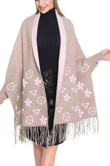 Gorge Cardigan Shawl Poncho Beige Pink
