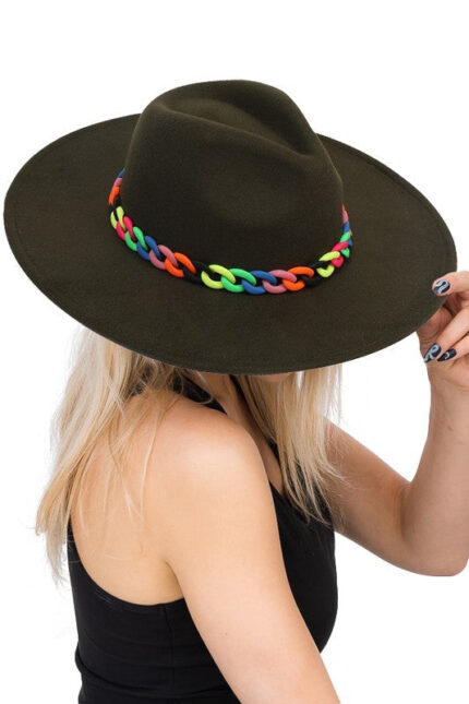 Olive Red Chain Fedora